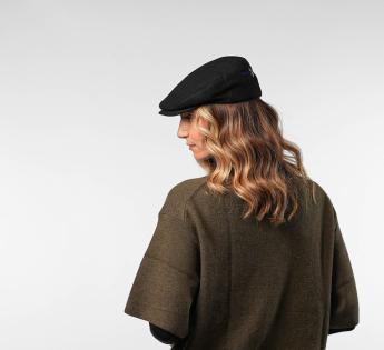 Coppola piatta rivisitata con un tocco artistico e contemporaneo. Sul retro, un ricamo astratto dai colori vibranti, immaginato e realizzato nel nostro atelier, crea un contrasto sorprendente di forme e materiali.