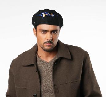 Coppola piatta rivisitata con un tocco artistico e contemporaneo. Sul retro, un ricamo astratto dai colori vibranti, immaginato e realizzato nel nostro atelier, crea un contrasto sorprendente di forme e materiali.