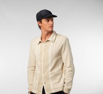 Cappellino ispirato al baseball reinventato per l'inverno, con un mix di materiali morbidi e contrastanti. La cupola in velluto a coste aggiunge profondità e un tocco vintage, mentre la visiera in lana testurizzata assicura calore e comfort.