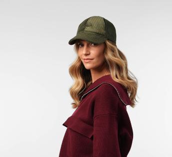 Cappellino ispirato al baseball reinventato per l'inverno, con un mix di materiali morbidi e contrastanti. La cupola in velluto a coste aggiunge profondità e un tocco vintage, mentre la visiera in lana testurizzata assicura calore e comfort.