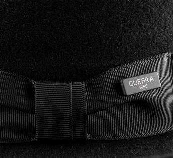 Realizzato a mano in Italia, questo cappello in feltro rappresenta il culmine dell'eleganza raffinata. La sua finitura scamosciata rivela un aspetto vellutato che cattura la luce e mette in risalto i suoi tratti delicati. Ornato con un ampio nastro grosgrain annodato in modo classico, il cappello è impreziosito da una placca firmata Guerra 1855, testimonianza di un'artigianalità senza pari.