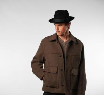 La forma intramontabile del Fedora è esaltata da una tesa tagliato netto modellabile, che può essere portata abbassata o sollevata, a seconda dello stile desiderato. Un cappello raffinato, tecnico e versatile, pensato per chi cerca l'eleganza senza compromessi.