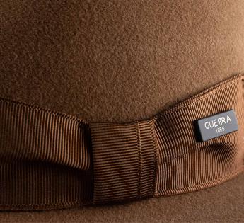 Realizzato a mano in Italia, questo cappello in feltro rappresenta il culmine dell'eleganza raffinata. La sua finitura scamosciata rivela un aspetto vellutato che cattura la luce e mette in risalto i suoi tratti delicati. Ornato con un ampio nastro grosgrain annodato in modo classico, il cappello è impreziosito da una placca firmata Guerra 1855, testimonianza di un'artigianalità senza pari.