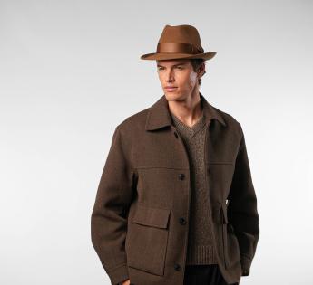 La forma intramontabile del Fedora è esaltata da una tesa tagliato netto modellabile, che può essere portata abbassata o sollevata, a seconda dello stile desiderato. Un cappello raffinato, tecnico e versatile, pensato per chi cerca l'eleganza senza compromessi.