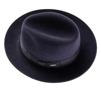 Realizzato a mano in Italia, questo cappello in feltro rappresenta il culmine dell'eleganza raffinata. La sua finitura scamosciata rivela un aspetto vellutato che cattura la luce e mette in risalto i suoi tratti delicati. Ornato con un ampio nastro grosgrain annodato in modo classico, il cappello è impreziosito da una placca firmata Guerra 1855, testimonianza di un'artigianalità senza pari.
