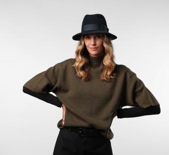 La forma intramontabile del Fedora è esaltata da una tesa tagliato netto modellabile, che può essere portata abbassata o sollevata, a seconda dello stile desiderato. Un cappello raffinato, tecnico e versatile, pensato per chi cerca l'eleganza senza compromessi.