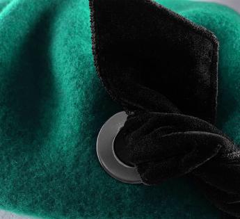Questo berretto reinventato gioca con i contrasti con audacia e raffinatezza. La sua forma basca, di taglio medio, è arricchita da un duo di dettagli forti: un fiocco in velluto intrecciato a mano e due occhielli metallici che modernizzano la silhouette. Un equilibrio sottile tra tradizione e design, pensato per un look femminile sicuro.