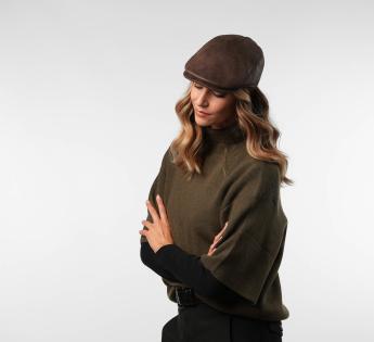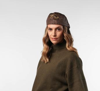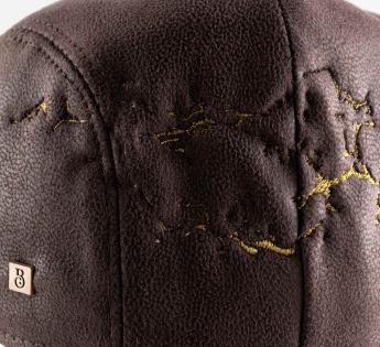 Con il suo materiale flessibile al tatto come la pelle di pesca, questo duckbill evoca elegantemente la patina di un cuoio datato. La sua finitura marrone profondo è discretamente animata da un motivo craquelé dorato ricamato sul retro, un omaggio all'arte del kintsugi, dove l'imperfezione diventa preziosa.