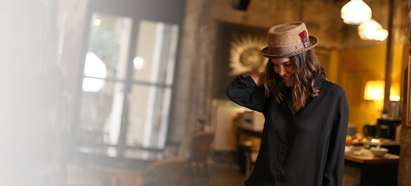 Grafico e raffinato, tra minimalismo e distinzione, il PorkPie firma una silhouette strutturata, urbana, indiscutibilmente stilosa. Un cappello dal formato ridotto, ma dall'impatto visivo deciso, che le menti creative adottano come una firma.