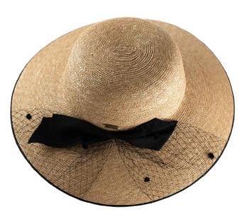 Questo cappello racchiude tutto il fascino delle silhouette femminili. La sua linea ampia, la paglia finemente intrecciata, il nastro annodato e il velo leggero creano un’allure chic, delicatamente vintage, piena di grazia e carattere.