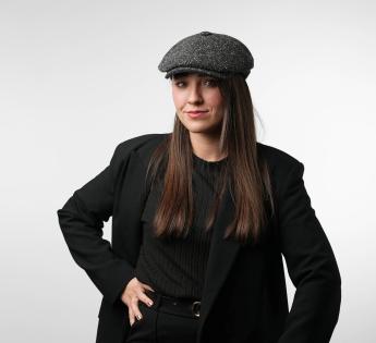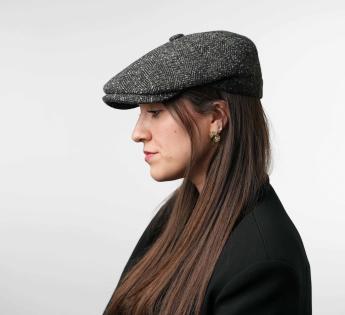 Coppola irlandese, di un'elegante nonchalance, la sua forma è generosa, senza essere troppo ampia. Può essere indossata sia dritta che leggermente inclinata su un lato. È realizzata in un tessuto tradizionale a zigzag, ideale per proteggersi dal freddo.
