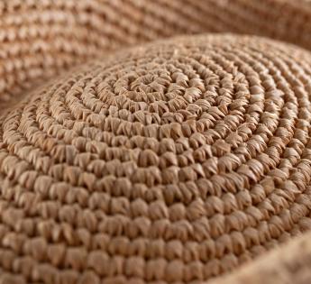 100% paglia di rafia naturale, rinomata per la sua flessibilità e il suo aspetto naturale.