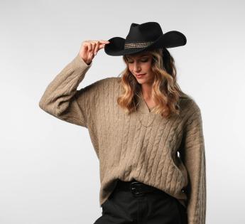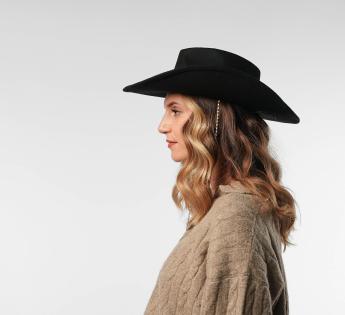 Questo cappello western si impone per la libertà che offre a chi lo indossa. La sua ampia tesa, interamente bordata in ottone, può essere modellata a piacere: sollevata per uno spirito cowboy deciso, leggermente incurvata per uno stile più discreto, o lasciata dritta per un look contemporaneo. Un vero terreno di gioco stilistico.