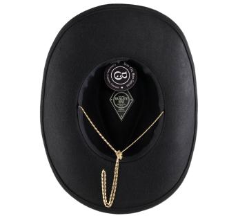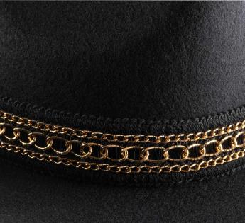 Realizzato in feltro di lana, è al contempo caldo, impermeabile e durevole. La cinta ornata di catenelle dorate aggiunge un tocco luminoso e contrastante, tra classicismo e audacia. Il sottogola fine in stile catenella ne sottolinea il carattere e consente un uso più sicuro.