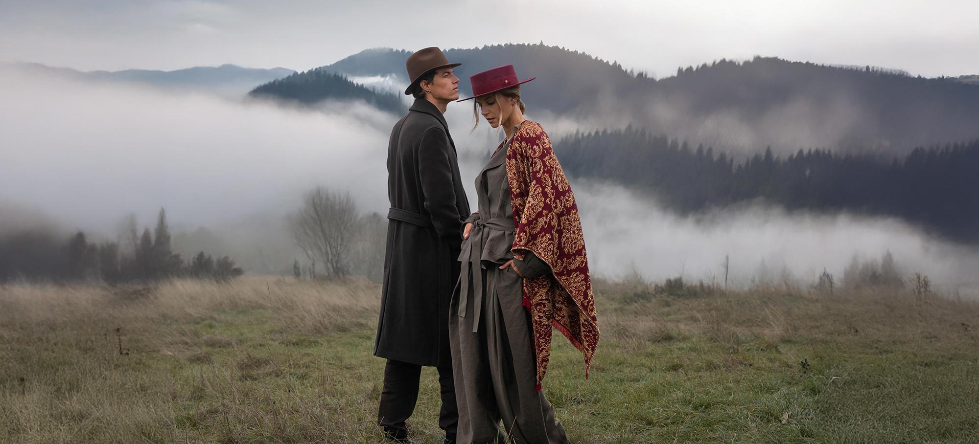Texture grezze, patine naturali, forme vive: qui, lo stile si scrive nel vissuto. Fedora in feltro stropicciato, Cappello Outback ammorbidito, Coppola irlandese in tweed mélange o Berretto Newsboy vintage . Le tonalità sono sorde — tabacco, verde cenere, grigio pietra — e i materiali raccontano una storia. Uno stile libero, al contempo affermato e rilassato.