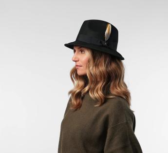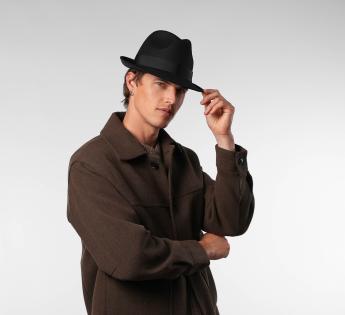 La sua cinta in grosgrain tono su tono, arricchita da un'Etichetta metallica discreta, rafforza la sua estetica raffinata. Ideale per il tempo umido o in viaggio, questo cappello in feltro idrorepellente unisce protezione, flessibilità e tenuta impeccabile. Un must per gli amanti dei copricapi pratici, con un look curato e strutturato.