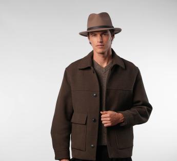 La cinta in pelle impunturata aggiunge un tocco di autenticità, mentre la piuma colorata rimovibile offre un cenno più espressivo. Un modello dallo spirito libero, che assume la sua eleganza senza rigidità.