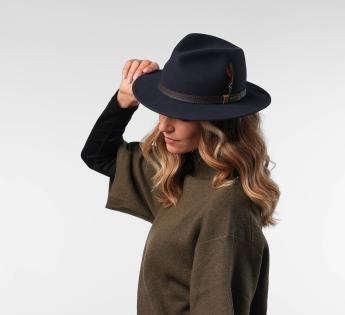 La cinta in pelle impunturata aggiunge un tocco di autenticità, mentre la piuma colorata rimovibile offre un cenno più espressivo. Un modello dallo spirito libero, che assume la sua eleganza senza rigidità.