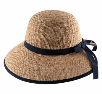 La sua linea flessibile, l’ampia tesa e il nastro annodato disegnano un’eleganza delicata, luminosa e profondamente femminile. Avvolge il viso con dolcezza, mentre il retro delicatamente scoperto valorizza la nuca e i capelli con naturalezza.