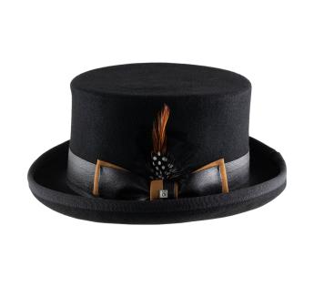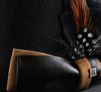 Cappello a cilindro basso con uno stile deciso, questo modello rompe gli schemi con un'eleganza audace. Realizzato nel nostro atelier di Lione, combina un feltro di lana italiano di alta qualità con finiture piene di carattere: cinta in similpelle nera, doppio fiocco effetto pelle scamosciata, Etichetta metallica e piuma amovibile per un tocco di fantasia controllata.
