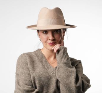 Cappello dall'eleganza senza tempo realizzato in feltro 100% lana e rifinito con un nastro gros grain tono su tono. La sua coupe si adatta a tutte le morfologie, offrendo uno stile impeccabile che valorizza facilmente i nostri outfit. La sua cupola è fessurata e pinzata davanti, sui due lati, per una presa facile.