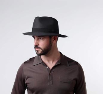 Cappello per gentlemen traveller realizzato in feltro flessibile, morbido e confortevole, che lo rende un accessorio perfettamente caldo per l'inverno. È sobriamente arricchito da una banda di guarnizioni in satin.