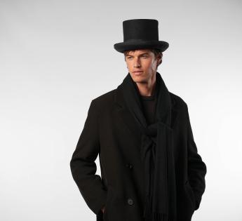 Questo cappello a cilindro in feltro di lana indurito incarna l'eleganza nella sua forma più pura. La sua cupola alta, volutamente accentuata, crea una linea verticale maestosa, firmato delle grandi silhouette di cerimonia. Il feltro rigido, lavorato con precisione, assicura una tenuta impeccabile e una finitura raffinata.
