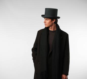 Questo cappello a cilindro in feltro di lana indurito incarna l'eleganza nella sua forma più pura. La sua cupola alta, volutamente accentuata, crea una linea verticale maestosa, firmato delle grandi silhouette di cerimonia. Il feltro rigido, lavorato con precisione, assicura una tenuta impeccabile e una finitura raffinata.