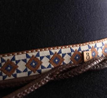 La sua cinta jacquard con motivi geometrici colorati evoca i codici dello stile "western saggio", arricchito da un laccio in pelle con estremità metalliche. La discreta Etichetta firma il nostro savoir-faire artigianale. Un dettaglio che fa la differenza. Un accessorio pensato per gli amanti dell'autenticità, delle belle finiture e dei pezzi durevoli.