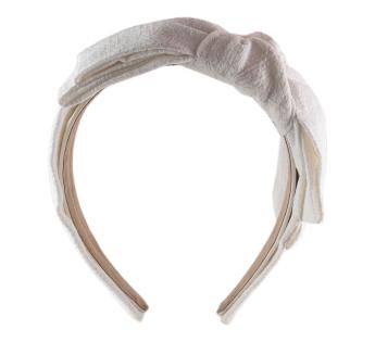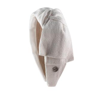 Realizzato nel nostro atelier, questo gioiello per capelli trova il perfetto equilibrio tra Fascia per capelli e turbante. Il doppio nodo intrecciato in lino, leggermente asimmetrico su un lato, dona un’allure unica, raffinata ma mai rigida.