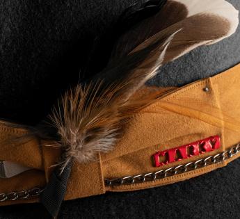 L'associazione di diverse materie e texture è una delle tendenze di moda di questa stagione. Scopri tu stesso questa combinazione di feltro e pelle scamosciata ben pensata. Il risultato è un cappello classico alzato da una cinta di colore naturale vivace, con cuciture, fantasie e una piuma. Così possiamo godere di una creazione a cui è stata aggiunta una bella nota di brillantezza.