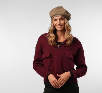 Questo berretto perpetua l'eleganza senza tempo del modello celebrando l'autenticità della moda francese. Potrai indossarlo in molti modi, dietro, di lato o come un cappellino, pizzicando il bordo davanti come una visiera.
