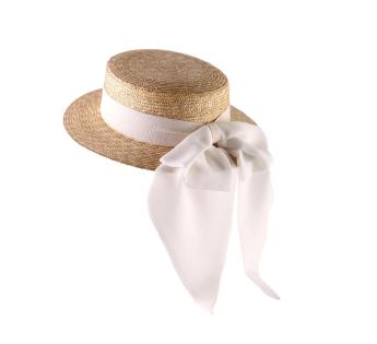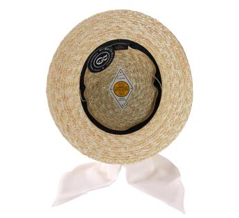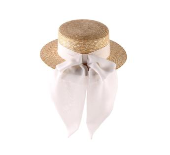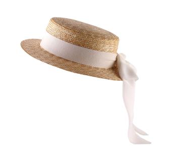 Cappello Paglietta realizzato con paglia cucita finemente in Italia. È abbellito da un nastro in mussola fatto a mano nel nostro laboratorio in Francia. Si tratta di un modello per bambina, tutto in eleganza.