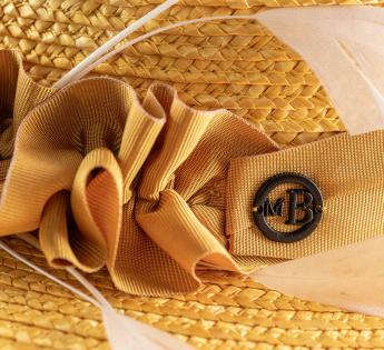 Ogni dettaglio rivela l’arte del gesto. La piega precisa del nastro e la leggerezza delle piume testimoniano una cura meticolosa per ogni particolare. È questo lavoro d’alta manifattura, realizzato con passione, che rende questo cappello un vero gioiello tessile per i tuoi eventi più belli.