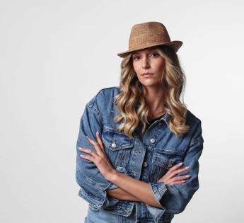 Cappello estivo realizzato in rafia intrecciata all'uncinetto. Il modello elegante e senza tempo è presentato senza guarnizioni, in un design pulito. Tuttavia, le tonalità del cappello sono leggermente variabili. Grazie a una tessitura meno fitta, si gode di una protezione solare con una buona ventilazione e traspirabilità allo stesso tempo.