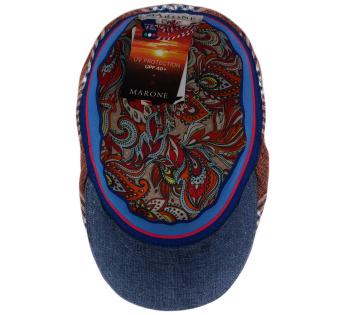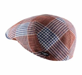 Questo cappellino della maison Marone è realizzato in un bellissimo motivo scozzese, classico ma al tempo stesso attuale grazie alle sue calde sfumature terracotta.