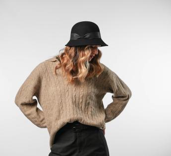 Chic e femminile, questo Cappello Cloche in lana infeltrita affascina con la sua linea retrò e la silhouette avvolgente. È sottolineato da guarnizioni in pelle flessibile, elegantemente pizzicate per aggiungere carattere all'insieme.