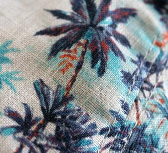 Il motivo a palma dona una vera freschezza visiva, evocando subito l’estate, le vacanze e le giornate luminose. Questa creazione trasmette un senso di leggerezza e spensieratezza, proprio come la sua materia leggera e la fodera traspirante.