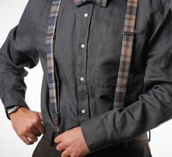 Il motivo tartan gioca su tonalità profonde e calde per un effetto al contempo deciso e sofisticato. Il tessuto strutturato offre comfort e tenuta, mentre le finiture in pelle aggiungono un tocco vintage controllato. Consegnate in una confezione sobria, queste bretelle sono un regalo di scelta o un asso nella manica per lo stile quotidiano. Da indossare con camicia, gilet o pantaloni a vita alta per un look perfettamente equilibrato.