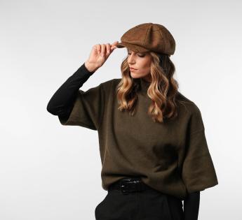 Con la sua silhouette ampia e la sua calda tonalità marrone, questo cappellino in vero tweed unisce comfort ed eleganza. Ispirato allo stile del Berretto Newsboy, mescola disinvoltura e raffinatezza, adattandosi sia al casual chic che all'eleganza urbana.