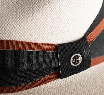 Questo Cappello Panama Montecristi si distingue per il suo nastro in gros-grain raffinato in tonalità senza tempo, la cui sovrapposizione dona un rilievo sottile. Il dettaglio asimmetrico che si prolunga sul retro infonde un dinamismo moderno a questa silhouette classica, firmata da un badge argentato spazzolato.