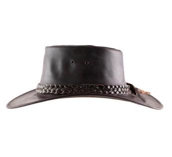 Cappello australiano realizzato in pelle liscia e decorato con un intreccio in pelle con 4 fili spessi. Il materiale è in realtà pelle di vitello, prodotto con la migliore selezione di pelle. Questa scelta conferisce al modello comfort e robustezza per esperienze piacevoli e prolungate.