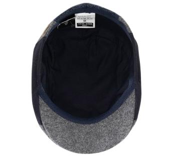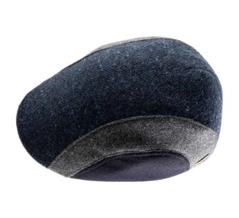 Questa coppola piatta affascina con il suo design grafico e i giochi di materiali a contrasto. I pannelli di lana in tonalità smorzate, che mescolano sfumature scure e chiare, aggiungono un bel rilievo. La sua forma profilata si adatta perfettamente alla testa, conferendo un aspetto sportivo ma elegante. Un'etichetta metallica discreta firma il modello sul lato.