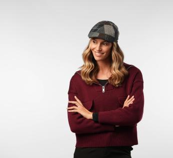 Stile deciso e comfort controllato. Questa coppola piatta duckbill affascina con il suo patchwork di texture in tonalità profonde, sottilmente contrastate. Il suo taglio aderente con visiera prominente struttura la silhouette per un look urbano ed elegante. La miscela di materiali nobili rivela un tocco raffinato e una caduta impeccabile.