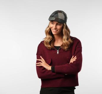 Stile deciso e comfort controllato. Questa coppola piatta duckbill affascina con il suo patchwork di texture in tonalità profonde, sottilmente contrastate. Il suo taglio aderente con visiera prominente struttura la silhouette per un look urbano ed elegante. La miscela di materiali nobili rivela un tocco raffinato e una caduta impeccabile.