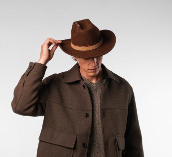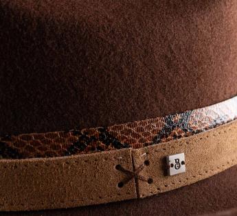 Le guarnizioni effetto serpente, arricchite da un'Etichetta metallica, segnano uno stile deciso, al confine tra rustico e raffinato. Questo modello si ispira alle leggende dell'Ovest mantenendo un'eleganza tutta francese. Un cappello di carattere, pronto a tracciare la sua strada tra tradizione artigianale e spirito avventuroso.